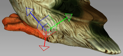 Orienting the object may be easier if you first specify a new position for the origin of the local coordinate system: double-click on the desired surface point in the 3D View window.