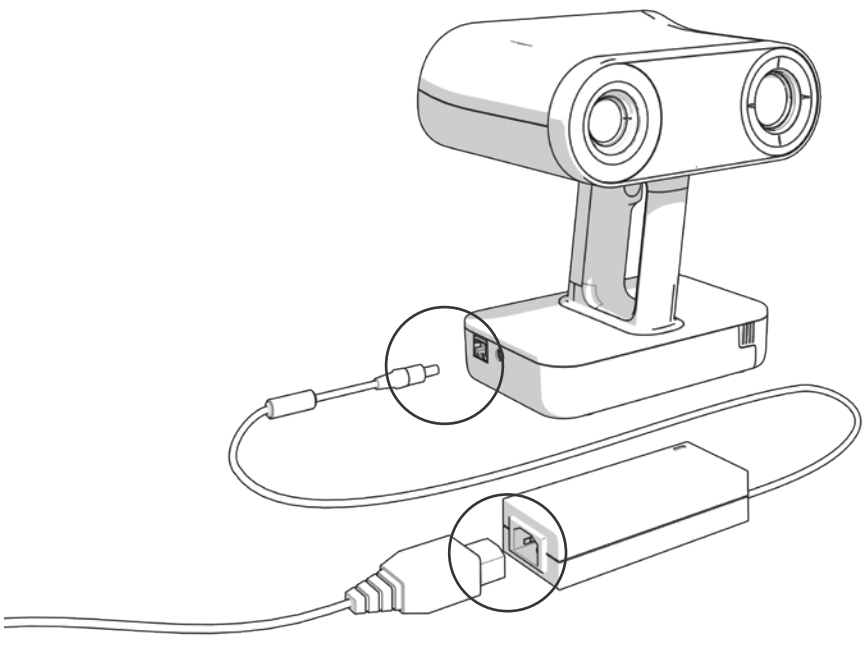 Using the DC cables and power adapters intended for Artec Eva or other scanners may lead to malfunction of Leo scanner.