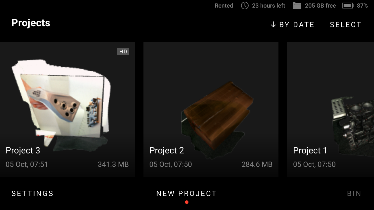 Tap New project or Add scan. Leo starts Preview.