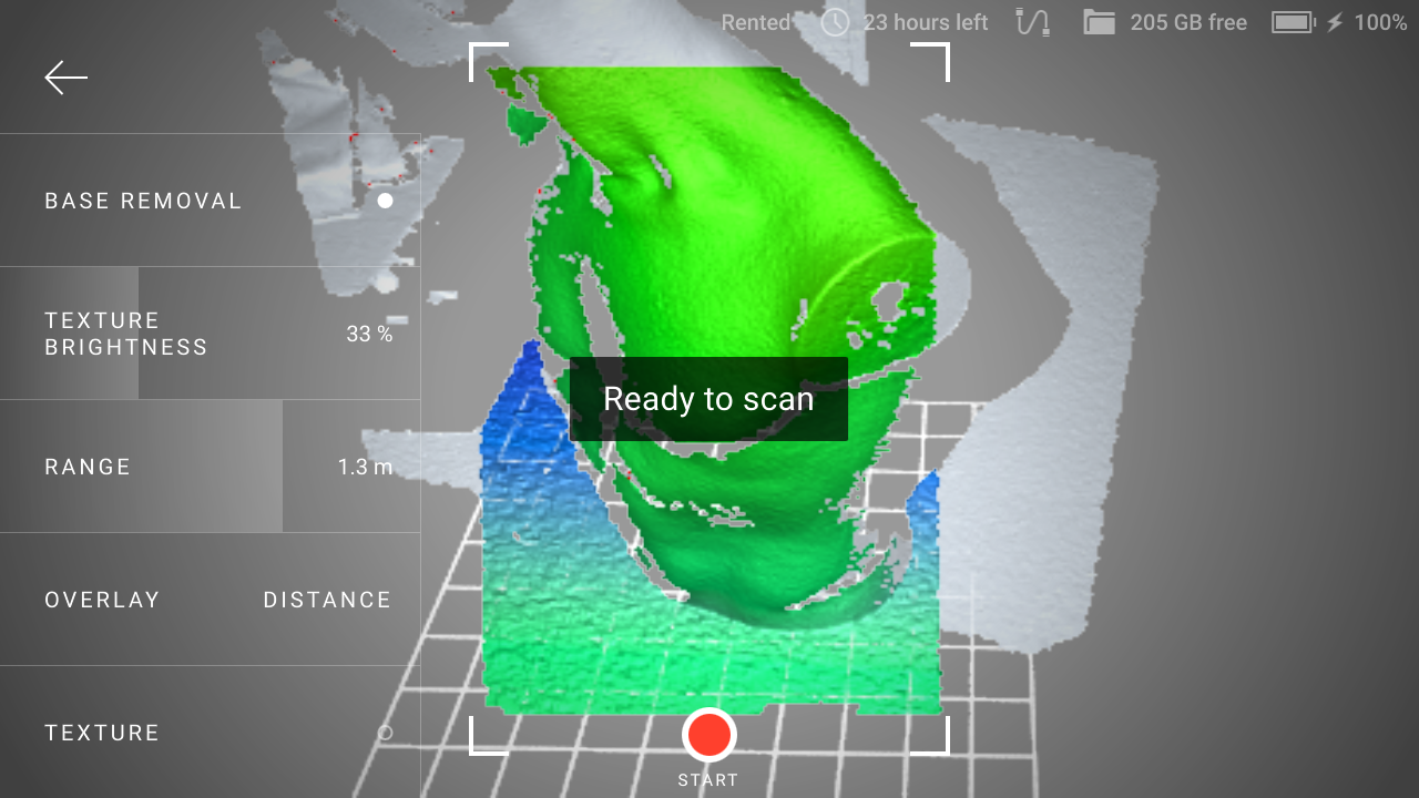 Practice your movements and assess the quality of the surface being reconstructed on the screen.